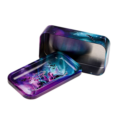 Boîte en métal avec couvercle plateau intégré, pratique, compacte et multifonction.